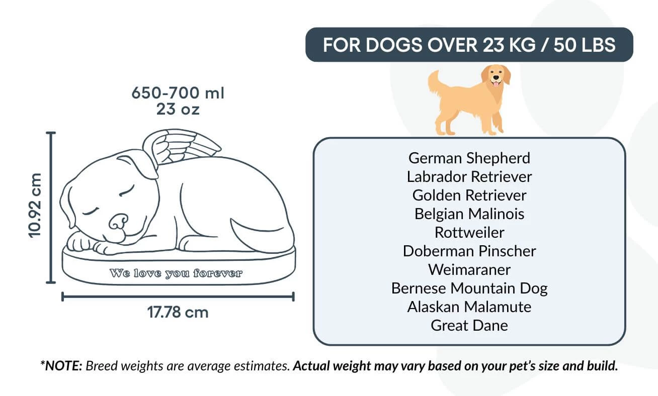 Placée au pied d’un arbre, dans un parterre fleuri ou près d’une tombe familiale, cette urne ange pour chien offre un souvenir réconfortant et intemporel, rappelant chaque jour le lien unique qui vous unit à votre compagnon à quatre pattes.