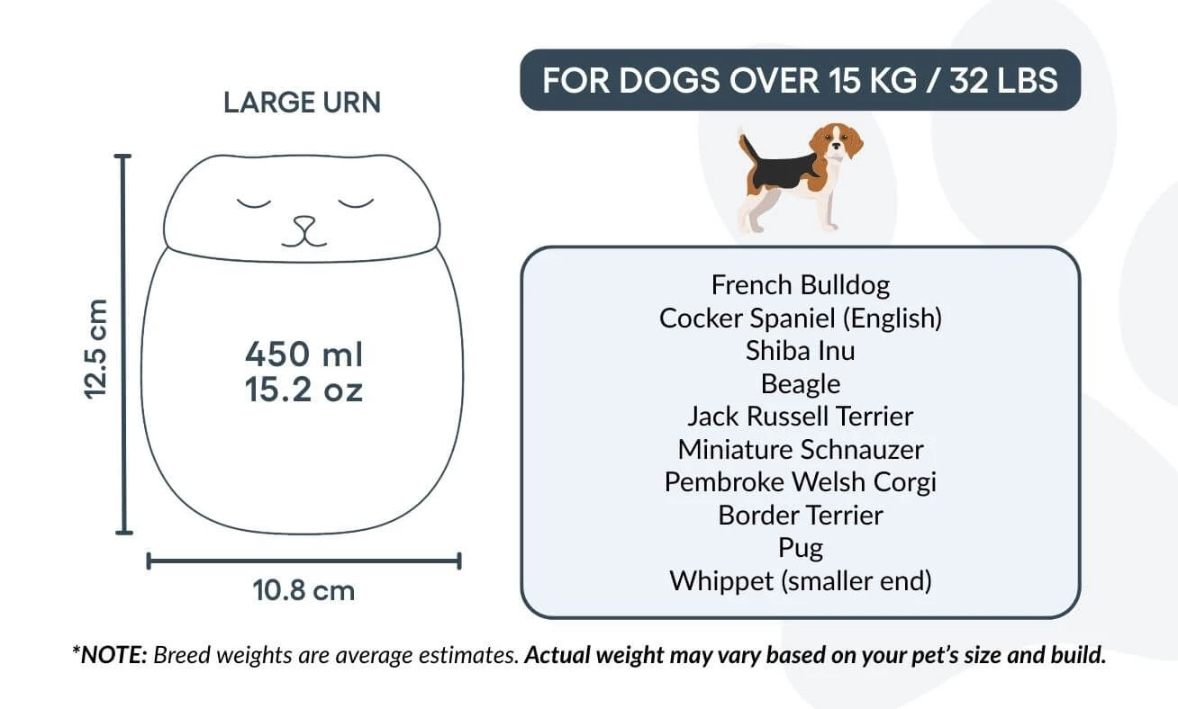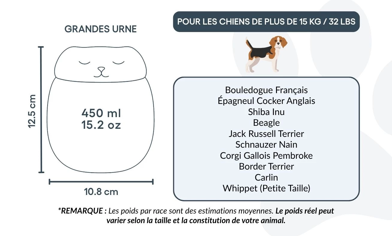 Placée sur une étagère, un meuble commémoratif ou un coin souvenir, cette urne commémorative devient un symbole d’amour et de fidélité. Idéale pour la crémation, la préservation des cendres ou comme souvenir d’intérieur, elle vous aide à garder un lien apaisant avec votre compagnon disparu.