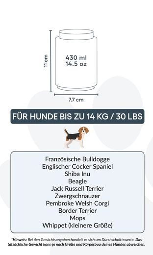 Convient pour les chiens jusqu’à 14 kg / 30 lbs