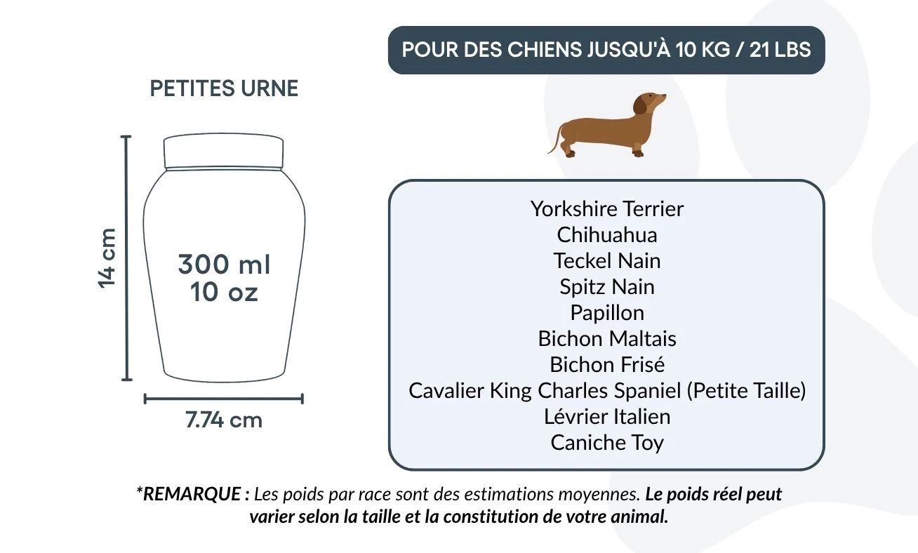 Créez un hommage unique et durable à votre compagnon avec cette urne funéraire pour chien en acier inoxydable personnalisée, gravée avec un message spécial sur le couvercle, ainsi que le nom et les dates de vie de votre animal. Conçue avec soin pour préserver sa mémoire avec dignité et tendresse, cette urne de crémation devient un souvenir profond et symbolique de votre lien indéfectible.