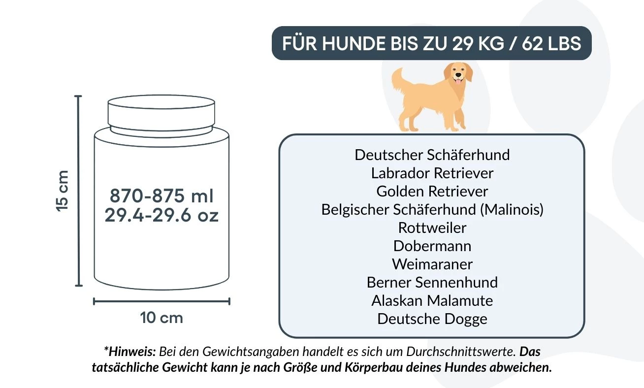 10 cm (L) × 15 cm (H) × 10 cm (P) | 870–875 ml / 29,4–29,6 oz