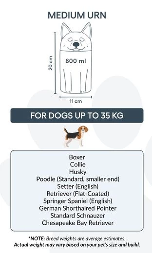 Disponible en trois tailles pour différentes races, du chihuahua au collie, cette urne funéraire en céramique devient bien plus qu’un simple contenant — c’est un hommage personnalisé et durable à l’amour partagé avec votre animal.