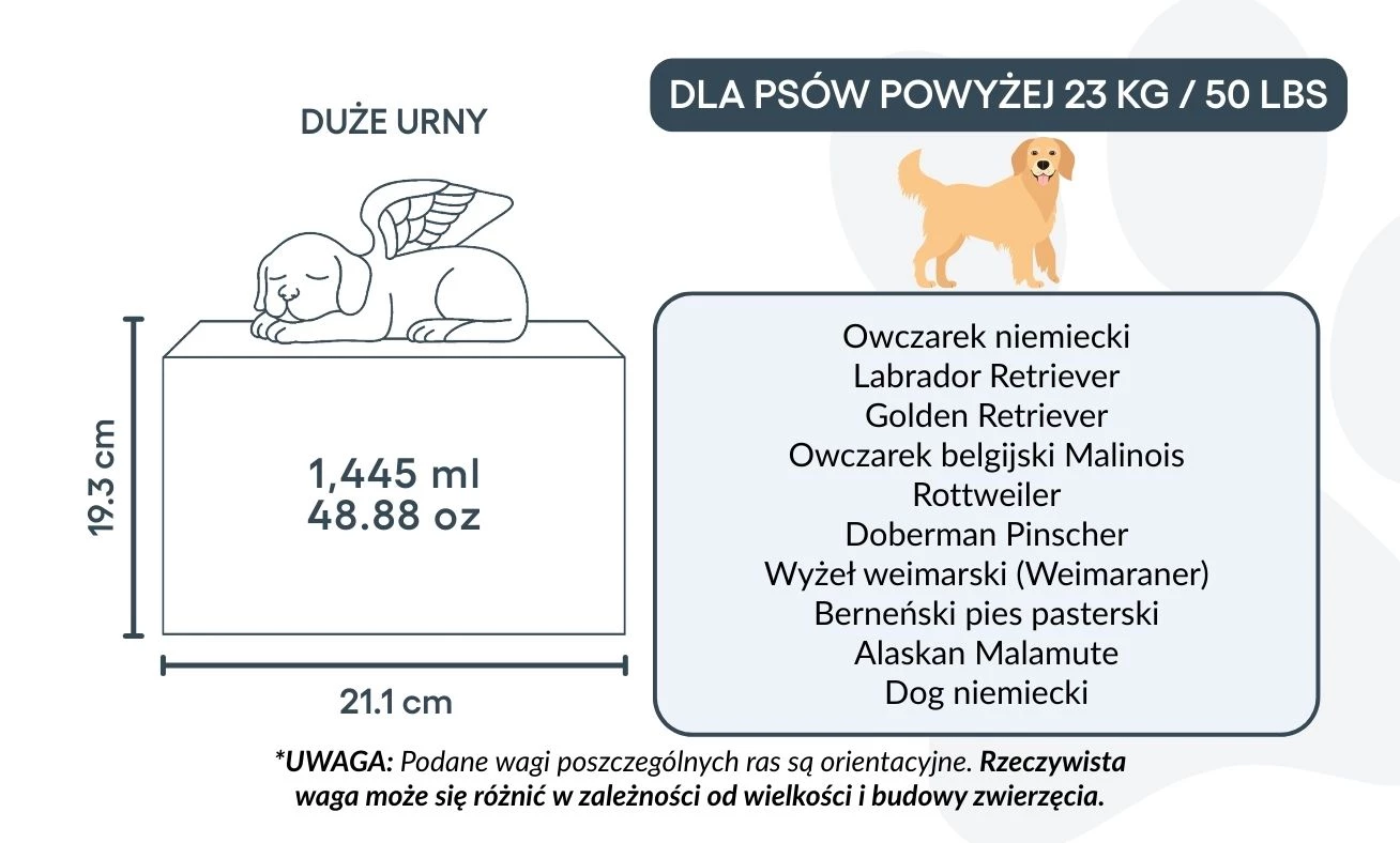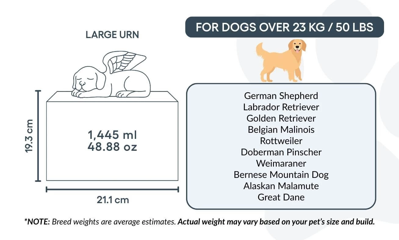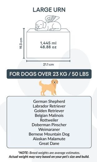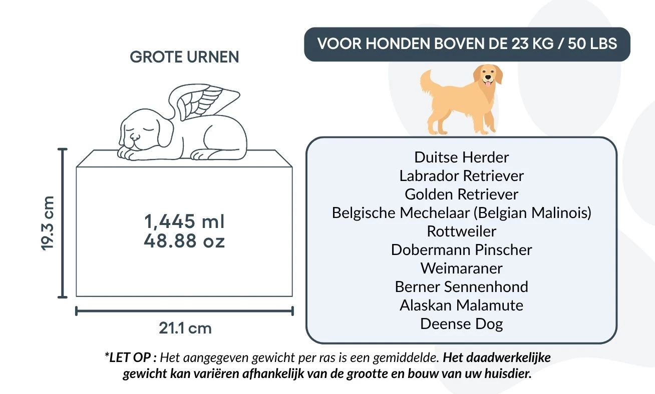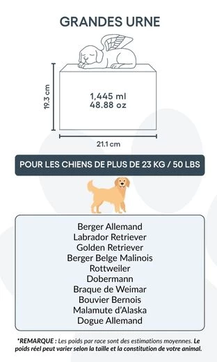 🤍 Conçue pour contenir les cendres de chiens jusqu’à environ 40 kg et plus