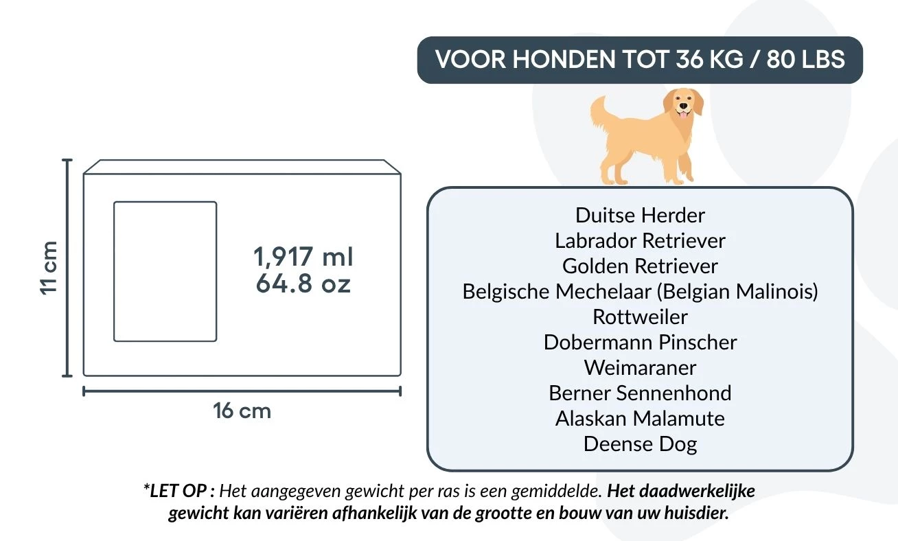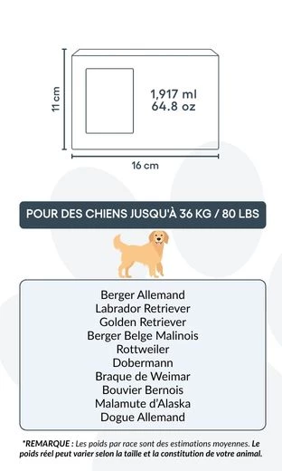 Convient pour les animaux jusqu’à 36 kg / 80 lb